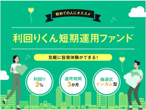 こんばんは!不動産クラウドファンディング投資家のSAITAMANです。 キャンペーン開催中! ※新規登録完了で1,500円分プレゼント! ※さらに、初回投資で1,000円分プレゼント! 不動産クラウドファンディング会員数国内No.1の「利回りくん」の「利回りくん短期…