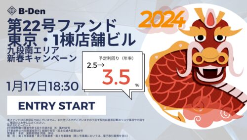 こんばんは!ソシャレン・不動産クラファンで1億円以上運用中のSAITAMANです。 上場企業直営! 1月17日18時30分から、東証スタンダード市場上場ビーロット(3452)が運営するB-Den(ビデン)にて、「B-Den第22号【東京・1棟店舗ビル】」が募集開始予定となって…