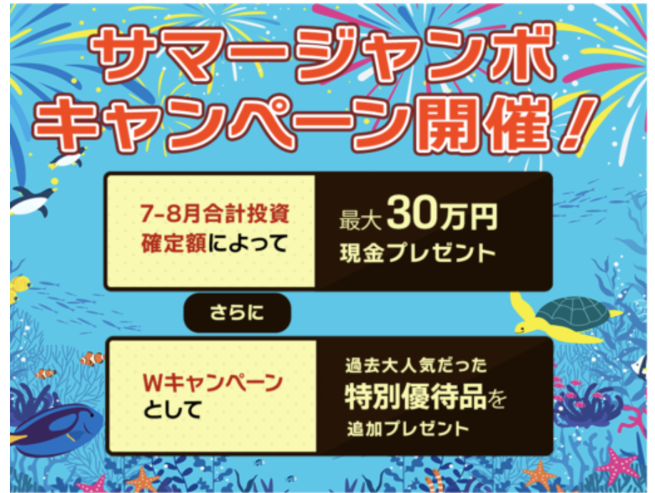 今回は、期間累計投資額が対象ですので、一気に投資しなくても対象となれるキャンペーンとなっています。