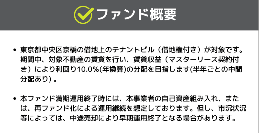 利回り不動産では、利回り10.0%の「利回り不動産65号ファンド(京橋テナントビル)」が公開されています!
