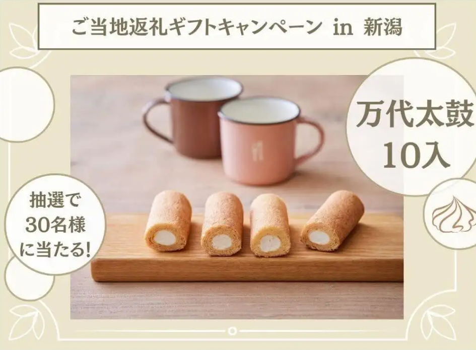 安政5年創業、大阪屋の『新潟銘菓・万代太鼓』10入が当たるご当地返礼ギフトキャンペーン