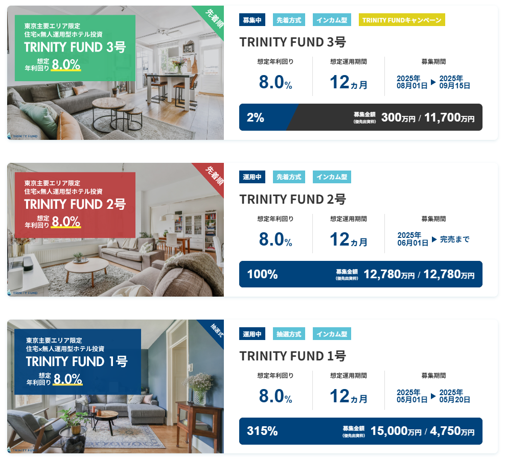トリニティファンドは、5月に第1号ファンドの募集が開始されたばかりのサービスです。